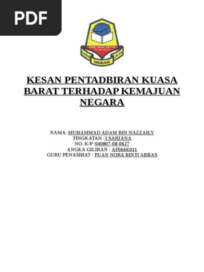Folio Sejarah Pt3 Kesan Pentadbiran Kuasa Baratterhadap Kemajuan Negara Pdf